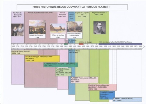 On comprend que ces tranches de vie intéressent au plus haut point Francis FLAMENT puisqu’elles couvrent une partie de l’histoire de sa famille installée à Maubray à cette époque. Nous lui sommes très reconnaissants de nous avoir fait part de tous ses commentaires, lesquels contribuent certainement à enrichir notre site. La représentation ci-après de son arbre généalogique est par ailleurs remarquablement effectuée: