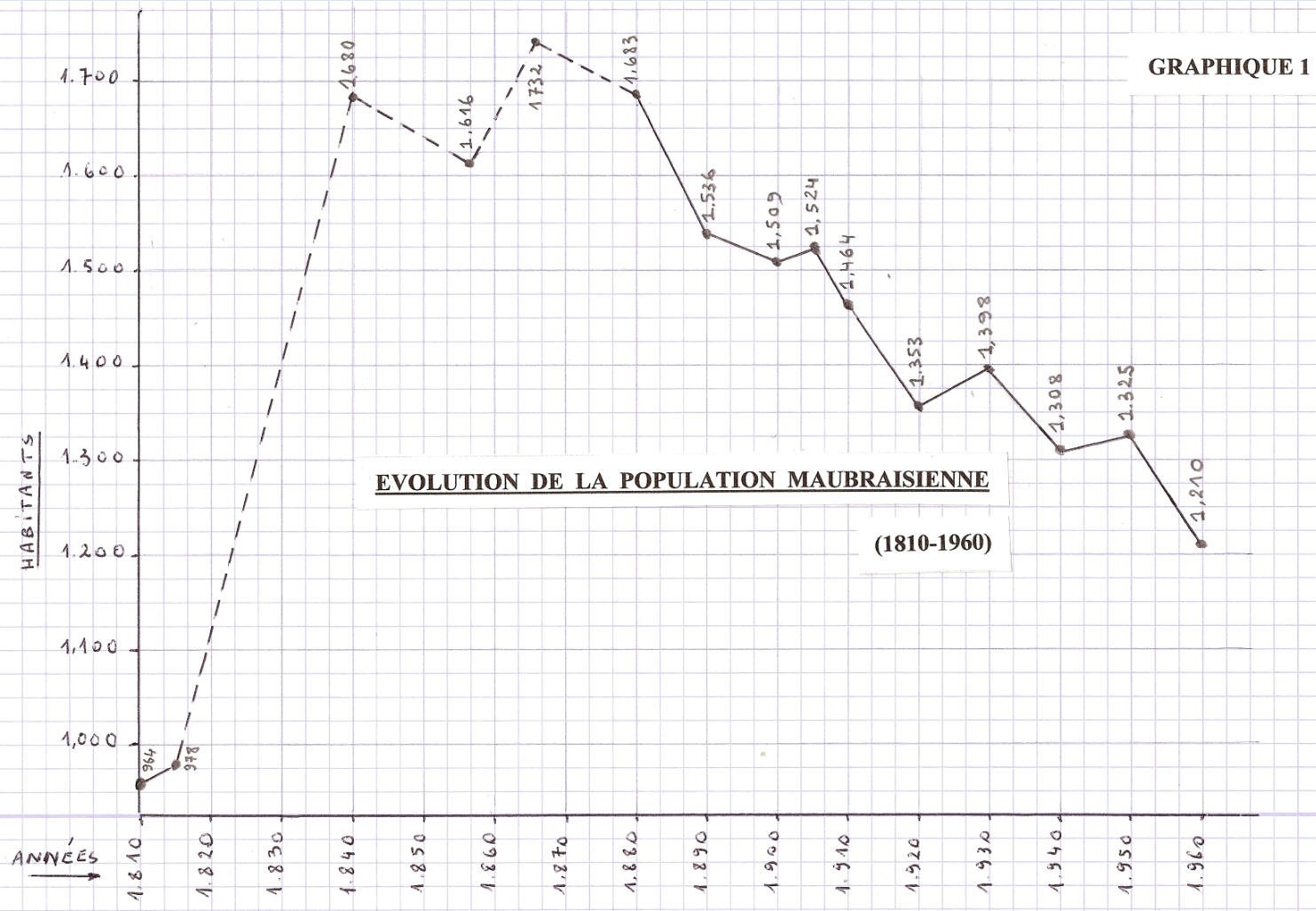 L’examen auquel nous nous sommes livrés porte sur l’évolution, en terme d’unités, de la population maubraisienne depuis 1810. Trois périodes sont passées en revue :