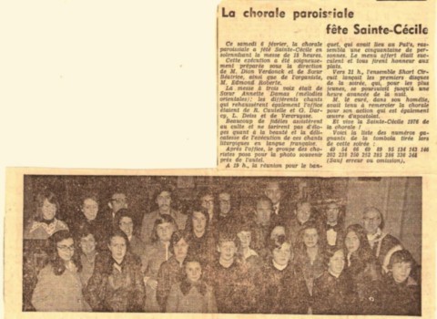 La chorale solennise la messe le dimanche 9 février. Un programme de choix est mis en œuvre par le chef. "Messe orientale de St Élie. "Pour quelle fête". "Laissons mugir le vent". "Noël noir" 5 voix a cappella (Edmond avait quitté l'orgue pour chanter avec le groupe). "Il faut tant de patience".