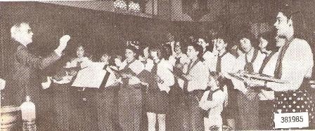 L'idée germa de former une phalange plus élaborée et mieux structurée. Soeur Béatrice demanda de l'aide successivement à Libert et Aubert Verdonck pour diriger le petit groupe. On fit appel ensuite à Dion Verdonck, musicien de fanfare, pour diriger la chorale. Avec Edmond Roberte, notre organiste, lui-même excellent musicien, ils ont entrepris les répétitions qui se tenaient le plus souvent dans une classe de l'école. L'apprentissage de chants à quatre voies mixtes (sopranes et altos pour les voix féminines, ténors et basses pour les voix masculines). Quelle patience pour discipliner et inculquer le chant choral à des non musiciens pour la plupart, mais passionnés par le chant !