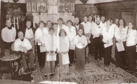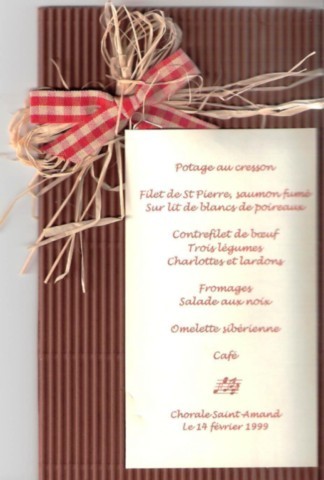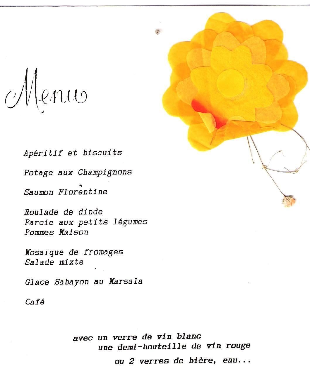 Pour une question de facilité, le repas de fête est fixé à présent au dimanche qui précède le congé de carnaval. Il a lieu au "Foyer de l'amitié" (le Pat’s) le dimanche 8 février. Cent vingt convives y participent, parents et amis s'y retrouvent volontiers dans une ambiance conviviale. Le repas est fort animé par des chants et saynètes préparées par les choristes. Comme noté dans le compte rendu joint à la photo, Sœur Béatrice, est revenue de Seneffe pour la circonstance. Elle est heureuse de l'évolution prise par la chorale. Sa présence est un réel encouragement pour progresser.