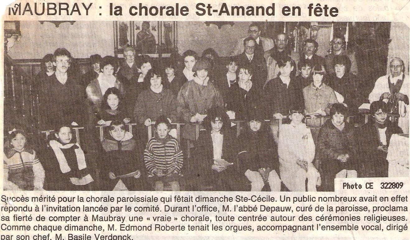 Notre ami Jean nous retrace là un joli petit bout d'histoire de ce que fut la vie à Maubray à travers la Chorale Saint-Amand de Maubray.