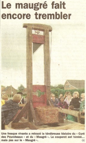 A cette même occasion, la ville d’Antoing et le foyer socio-culturel, en collaboration avec le théâtre Croquemitaine et des habitants du village, mirent sur pied une évocation de l’histoire du « curé des pourcheaux » à travers une balade didactique sur les lieux du crime jusqu’à la guillotine installée à l’endroit où eut lieu l’exécution de Lacquement au marais de Maubray.