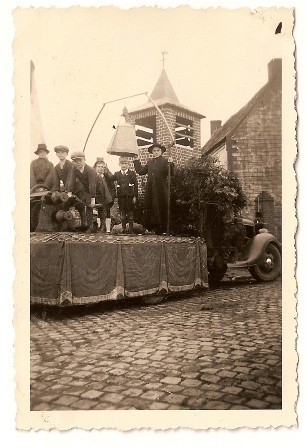 Les deux musiques communales, la musique de Vezon et la musique des Volontaires pompiers d’Antoing égayent le cortège de joyeux morceaux. Les rues ont pris un air de fête. Hélas ! en revenant de la rue du Sart, le temps, qui jusque-là s’était maintenu, se gâte brusquement. C’est alors la débandade sous l’averse ; les uns rentrent dans les granges, les autres cherchent à regagner leur maison.