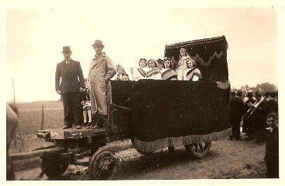 Le « cortège de la libération » se déploya de part en part au sein du village. Nous ne disposons d’aucun document relatif à l’agencement du défilé ni au nombre de groupes qui le composaient, mais trois photos constituent néanmoins des liens qui nous rattachent à cette journée sans doute mémorable pour ceux et celles qui l’ont vécue :