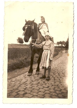 Cette photo a été prise à la Rue du Marais (qui va de la Rue du Porjet à la Rue du Haut-Bout), à proximité de la ferme de Jules PETIT (dit : Jules MANNEKEN); celle-ci a été rasée et sur son emplacement se trouve à présent l’habitation de Gérard DEREUX. La maison de droite, dont l’architecture a peu changé, à l’exception de la grange, appartenait à Jules HELLIN (marchand de charbons); une épicerie y était aussi exploitée (pancarte au-dessus de la porte d’entrée).