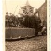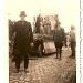 Cette photo prise près du pont royal présente, à côté des notables, un attelage à l’arrêt composé de trois chevaux reliés à un ou peut-être même deux chars dont, à l’extrême droite, celui de GABRIELLE PETIT (une espionne belge née à Tournai en 1893 et fusillée à Bruxelles en 1916 sur base d’une condamnation à mort par un tribunal militaire allemand; devenue héroïne nationale). Figurent notamment sur ce char la mère d’Ida Dereppe (JULIA CUIGNET, qui avait 8 ans à l’époque) et, sur celui de gauche, le père de sa mère; des croix désignent l’emplacement de ces deux personnes.
